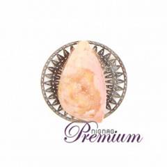 Brooch dengan material berupa batu druzy, dan memiliki tekstur yangberkilau di bagian tengah brooch. Dilapisi dengan lempengan tembaga.